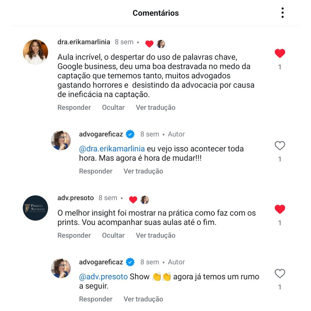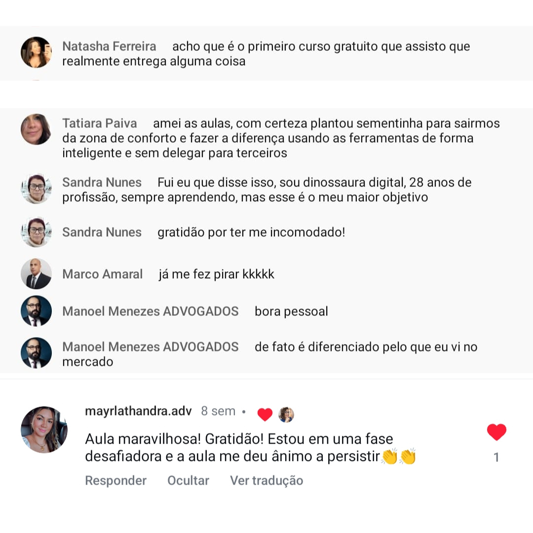 Esses advogados são como você que assistiram as aulas gratuitas e tiveram insights positivos de forma gratuita e saíram com a "cabeça fritando" de ideias.